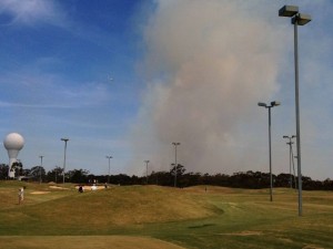 It was very surreal, playing golf with smoke blowing across the course, helicopters coming and going, sirens blaring in the distance, while on the course there was a group of guys, clearly on a bucks party, people pulling Eskies around with them rather that golf buggies, a kids birthday party group and a mix of everything else in between.