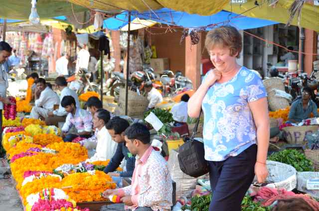 We headed into the City Palace and got a Rickshaw for a ride around town, visiting several markets, they all seemed to be around the Johri Bizar. We walked and were driven around the flower markets, a couple of spice markets, jewelery markets, clothes markets and a string of other shop types. We had a great morning and early afternoon just watching the city come to life and the people doing what they do. Around 1, we stopped and had some samosa for lunch, they were delicious, so much better than at home. Words really don’t do this country justice, you don’t get the feel, the vibrance, the colour, the smells, the hussle and bustle, and chaos. India is just alive, and everyone seems happy to just get on with life, we have seen very little impatience or disputes in our travels so far. We didn’t mention it earlier, but we did see a couple of men almost come to blows in Delhi, it looked like a car had rammed a motor bike and the bike rider was a bit (very) upset.