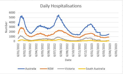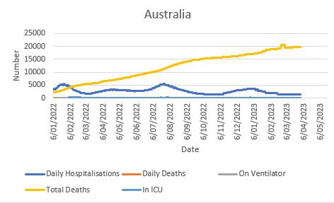 The following charts are a reasonable summary of the Covid-19 experience for the last couple of years. Each new wave of infections was not as severe as the one before and the treatment of the disease seems to improve based on the hospitalisations and deaths.