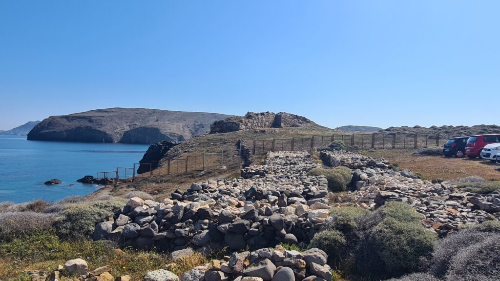 We had a half day tour of Milos organised and were picked up by Andreas our guide at 10am. Straight onto the road and up the hill a bit from our hotel to Filakopi, and the remains of a prehistoric neolithic settlement. The settlement was in existence here for the period 3300 to 1100BC and is one of the most important Bronze Age settlements in the Aegeon.