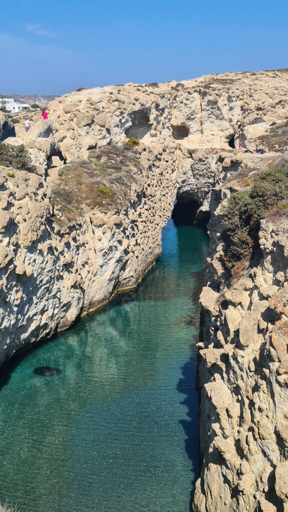 Alongside the ruins was the Papafragas Caves. Long narrow inlets, or fiords, where the sea has eroded caves into the cliff face. At the back end of the inlet the cave opens up and there is a small beach only accessible by swimming through from the seaside. A beautiful location.