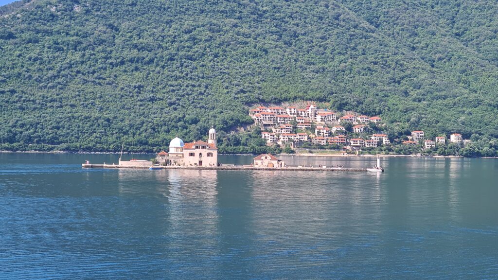 We stopped at a vantage point to look over the water to a small church in the middle of the waterway. It is called Our lady of the Rock, and commenced building in 1452 and took 200 years to complete.