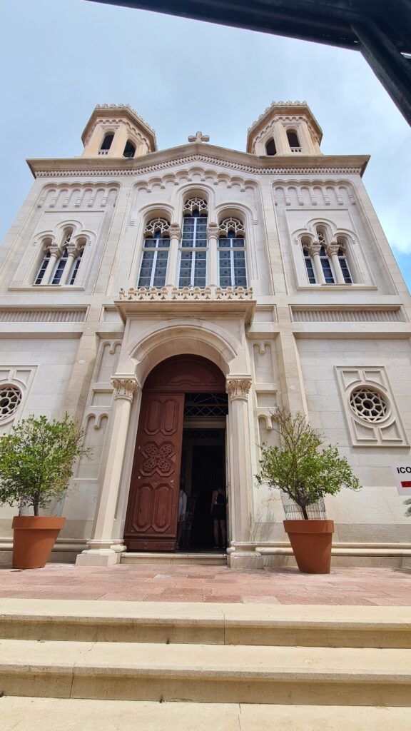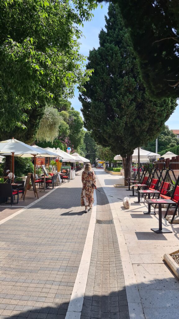 All done I walked up the road a bit to get an Uber back to our hotel, on the way to find a clear spot for a car to pull over I noticed a beach set up in a typically European way, with sun lounges all over it. The roads were packed so I took a pathway between the houses to the next street up which I hoped would be much quieter. The path was steep, narrow and lots of steps.