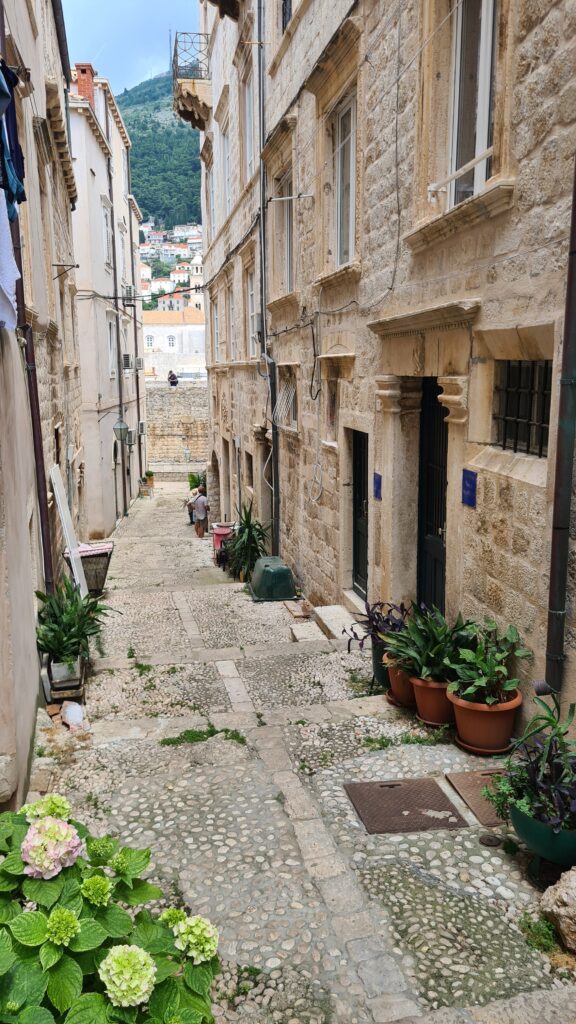 I enjoyed taking in all the sights we hadn’t really seen, the real bits of Dubrovnik. My walk to the Walled city finished with a section along the cliff faces on the waterfront. Beautiful views and again, many large old homes.
