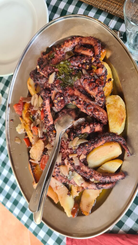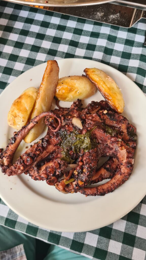 They were served, and cooked, on a bed of potatoes. The Octopus was just so tender, truly melt in your mouth and so full of flavour, the potatoes were equal to the octopus, the crunchy ones especially. I guess it took us a hour, but we managed to eat all the Octopus, there were potatoes left!