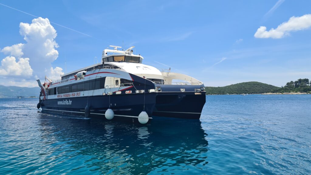 and after everyone getting off at Korcula were off we boarded and the ferry catamaran left on time at 1pm. It was interesting seeing the old town from the water (no pics. We were on the wrong side of the boat). The ride was pretty smooth all the way to Hvar. We passed a beach with lots of kite surfers out on the water, looked like fun. As with the ride to Korcula, there are large portions of the islands here that are uninhabited and covered in woodlands.