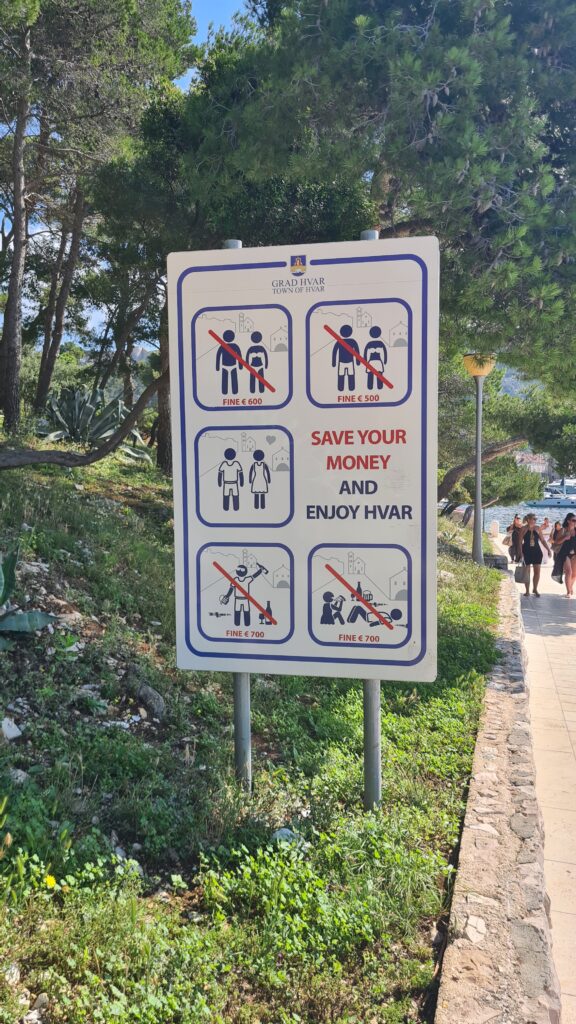 Breakfast at 8am and a walk into town at about 9:30am to meet up with our Sailing captain for our day sailing around the Pakleni Islands. I’m glad we are rule “followers”, they’re a bit strict here in Hvar!
