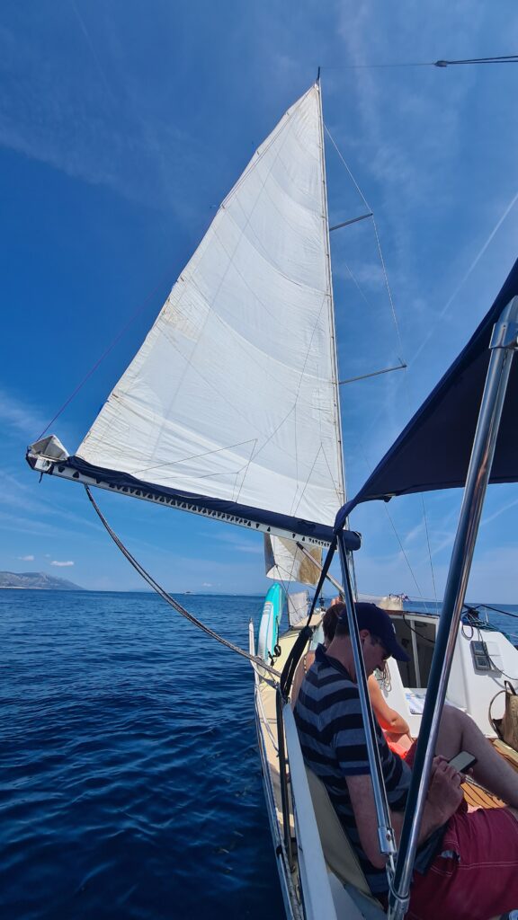 But we were sailing!. The last sailing trip we did, in Greece, was all under motor, no sail at all.