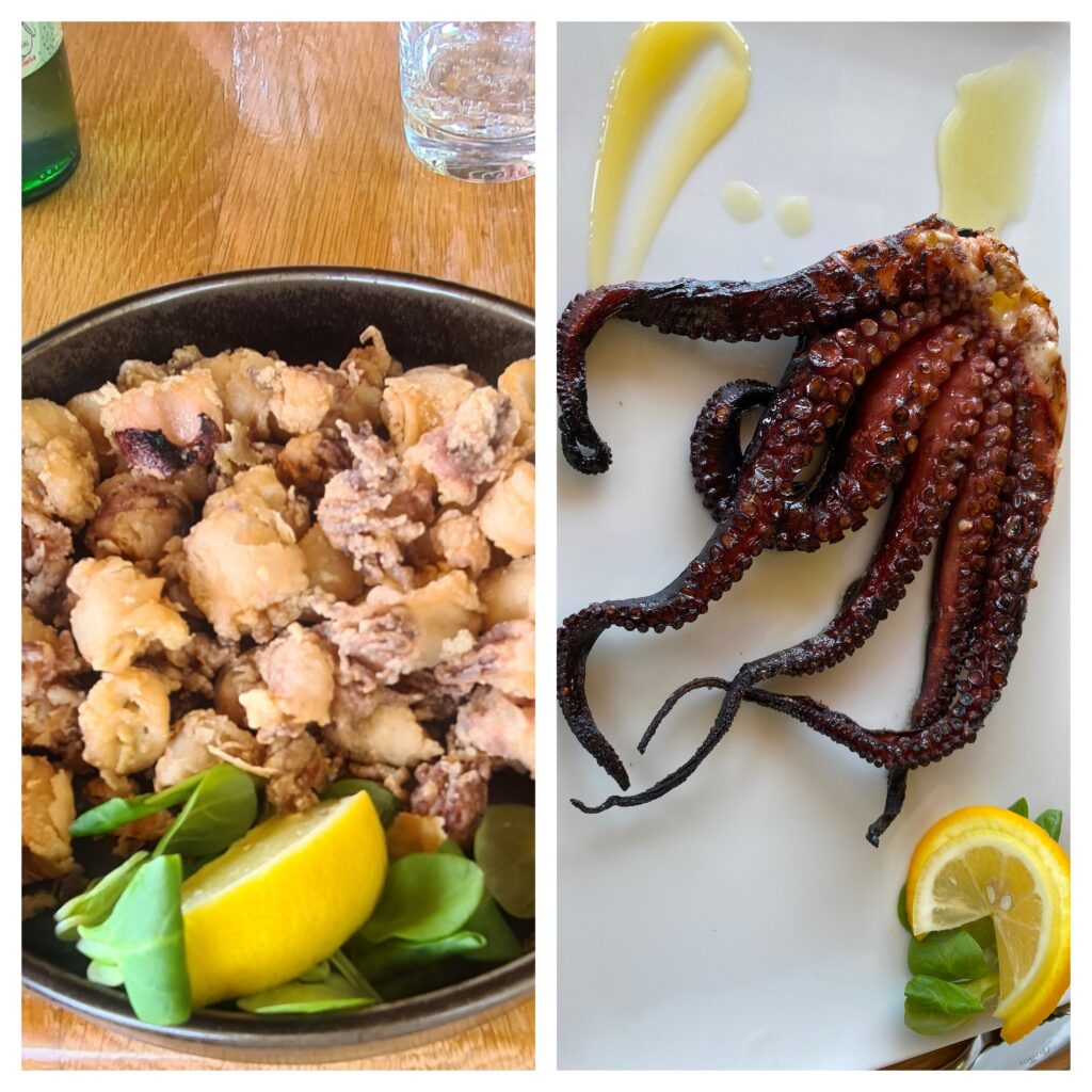 Fried squid and grilled octopus, yum