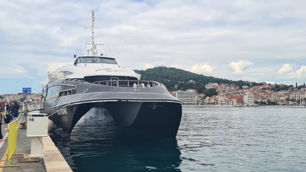 On the screens on our ferry it said that this ferry was the largest passenger ferry in the world, carrying 400 passengers at 40 knots! There are lots of spare seats but it looked like lots got on board.