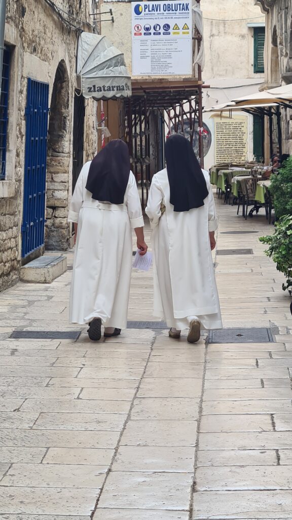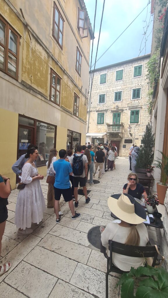 Ok, just back from a very generous food and history tour of the Palace of Split with our wonderful guide Lucy. That’s right, it is not an “Old Walled Town”, it is/was a purpose built Palace of a Roman Emperor, Diocletian. He built the Roman Palace in Split as his retirement home. It was built in just 10 years, at the turn of the 4th century. The original main streets of the Palace were wide enough for 10 Roman soldiers to march side by side down the streets.