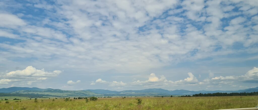 On the highways and country roads I have seen animal warning signs for pigs, cows, wolves, deer, and I think bears (may have been fat dogs/wolves)! During the drive we saw some hay bails in fields, may have been grain crops, some military vehicles on the road and a military base. There were lots of country roadside stalls selling cheese and honey. The further we went the more sheep, wide plains and high mountains we saw. There were lots of touring type motorcycles on the road.