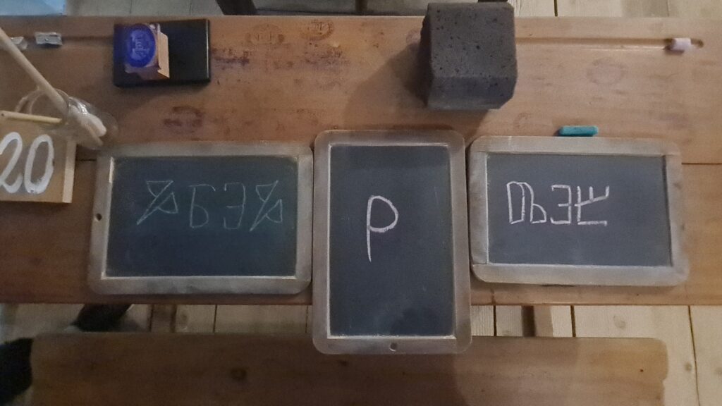 making either brandy or gin. We tasted many local delicacies such as sausage made from deer, ox, donkey, pig and their own rare unique breed of cow, we had truffled cheeses. We also tried their Olive oils, balsamic vinegar, jams and chocolates. I did my best trying their 29 different types of brandy (including a Mistletoe Brandy unique to the town)and 4 types of gin!! It was an interesting visit, particularly in the museum. We got to write our names in chalk on slates using the Glagoljica alphabet (the oldest Croatian letters)