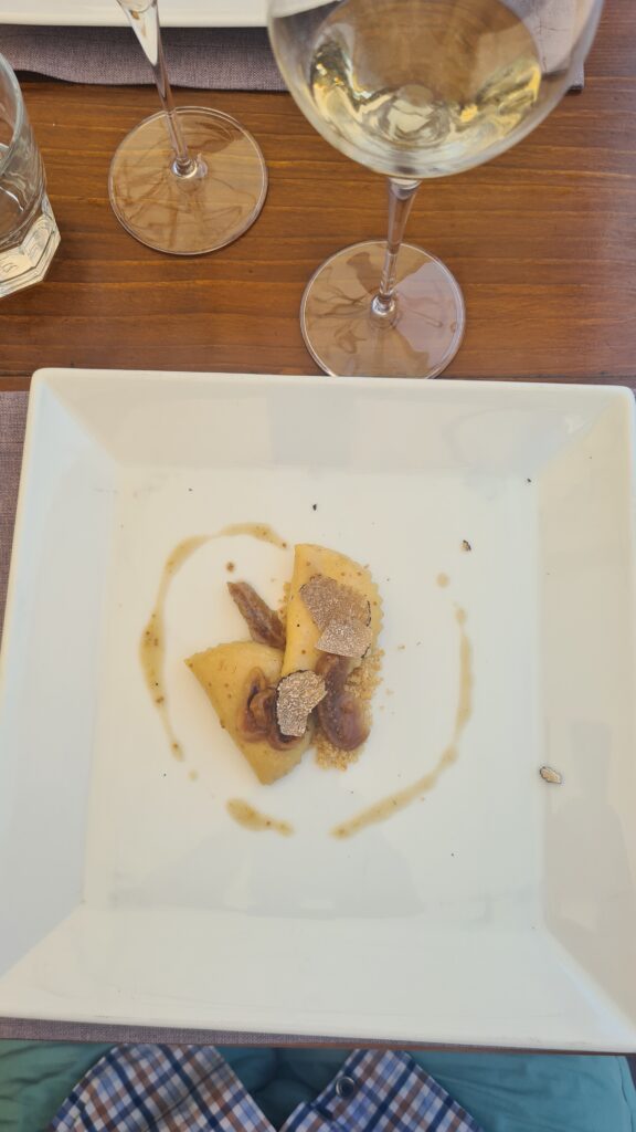 and finished with ravioli stuffed with cream and with fig and Truffle on the top.