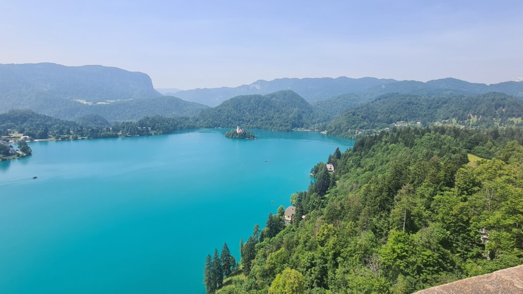 From there we drove to Lake Bled. It is a relatively small lake, about 2.1km long and only 6km around. The lake immediately had us drawing comparisons with Lake Louise in Canada, they are both the same colour, the colour you get with a glacial fed lake, a unique blue haze colour.