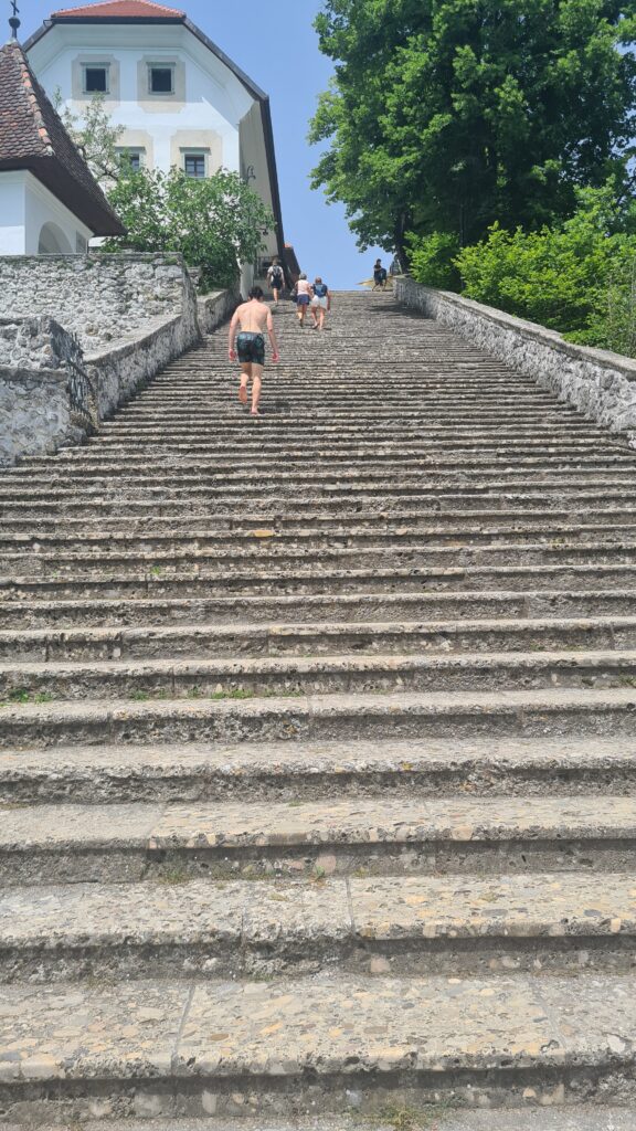 But I get ahead of myself. Our first stop was at Bled Castle, perched high on a rocky outcrop above the lake. The castle provided magnificent views over the lake. The castle itself was now more of a history piece of the area. There was no original or copies of the old furnishings in the castle, it was all historical displays. One interesting thing we saw there was a working Guggenheim printing press. It was interesting watching a man put it through the whole process, he had been working with it for about 20 yrs.