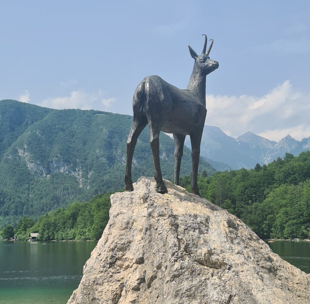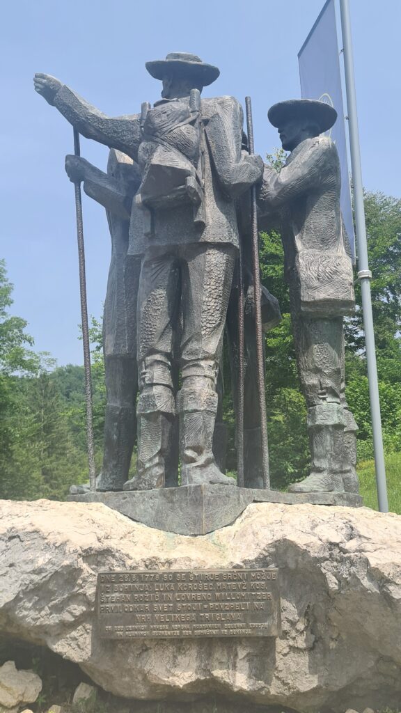 One of Slovenia‘s largest lakes, measuring 4.5km long. We saw a couple of statues while we were there. The first was of four men, who, back around the turn of the 19th century climbed the Julian Mountains and erected stone Cairns to mark the border of Slovenia with Austria.