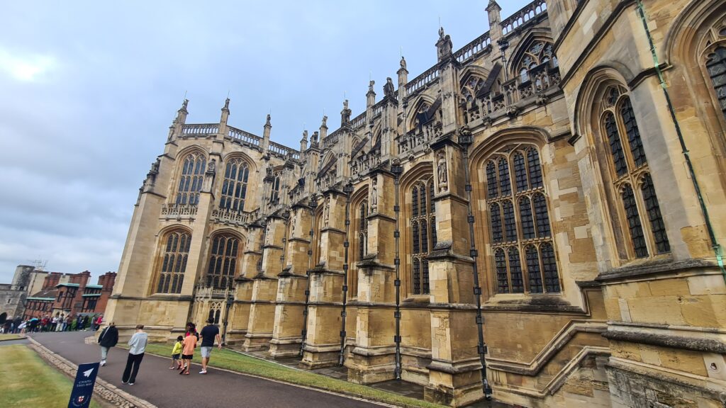 It’s a magnificent old building that was originally a Catholic Chapel, but Henry VIII changed that. It was built in the late medieval perpendicular Gothic style. It is Royal Peculiar and the Chapel of The Order of the Garter. It is the burial site of the late Queen Elizabeth II, where she is interred with her husband The Duke, and her mum and dad, and her sister Margaret’s Ashes are in there as well. There is also a black “Tombstone” in the floor for Henry VIII and Jane Seymour along with King Charles I and an infant child of Queen Ann, it lies in front of the alter in the Chapel. The roof structure and decorations in the chapel are breathtaking. So intricate yet flowing, reverent and very grand.