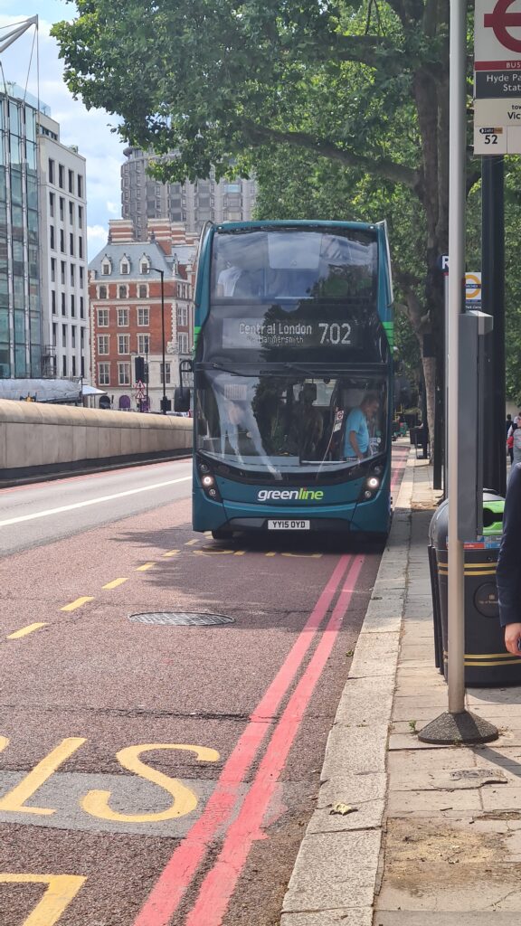 We then decided it was time to head home. We consulted our options and decided to bus it back! Yes, we got the 1:35pm number 702 from Windsor Village to Hyde Park Corner. An all stops green “red” double decker bus ride for 1hr 50 mins.