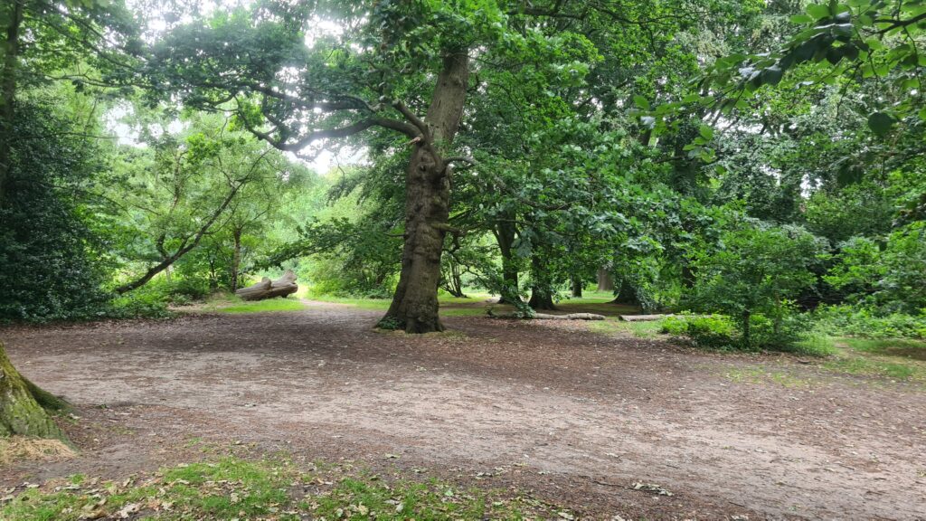 The walk through the heath was very relaxing. There were lots of people out walking their dogs, and the dogs were all having a great time.