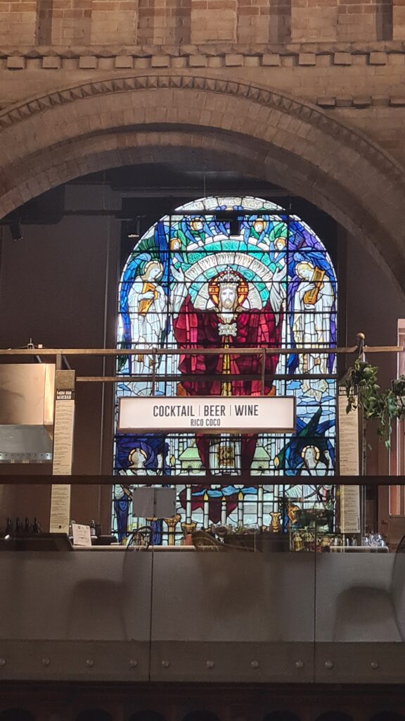 We walked through Grosvenor Square and eventually to Mercato Mayfair, what is described as a hip market in Mayfair. It is in a deconsecrated church and now houses small niche eateries over two levels and about 3 bars.