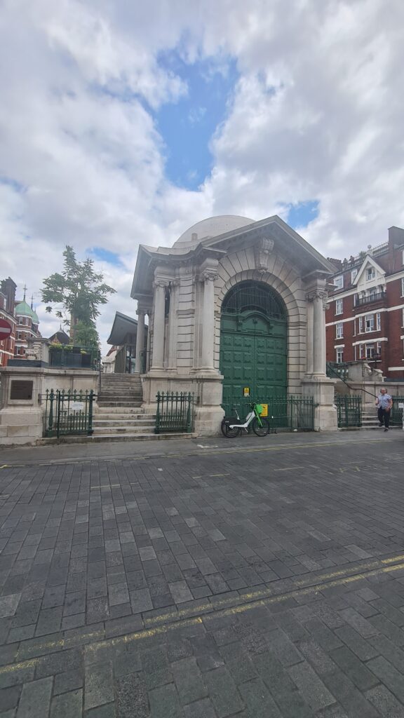 We tried to have a look in the Ukrainian Catholic Church across the road from Brown Hart Gardens, but it was locked up. It was built 1891 as The Kings Weigh House Chapel. Most of the buildings in the area appear to have been built in the mid to late 19th century.