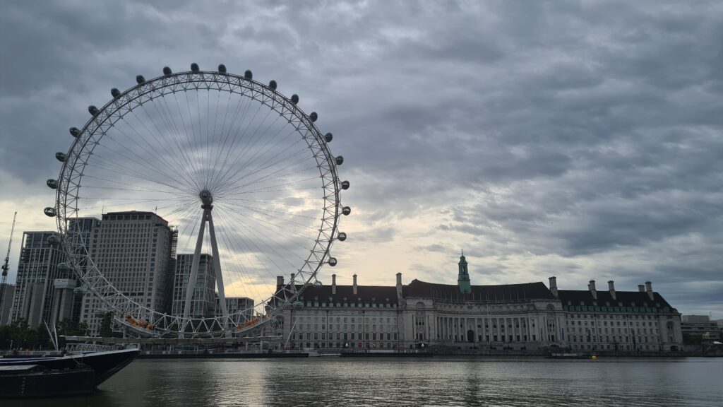 We walked south along the Thames towards Westminster. There was little wind and the light was pretty soft, so we got some reasonable photos. We walked past the London Eye (across the river from us)