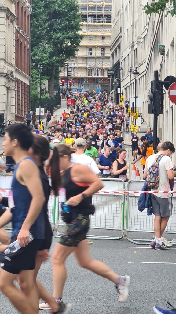 It was so good that it was all very quiet with no cars and very few people. We discovered the reason for our peaceful morning, the London ASICS 10km run was on.