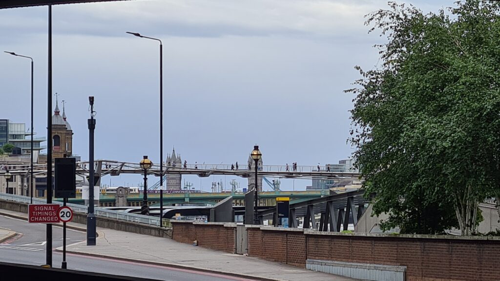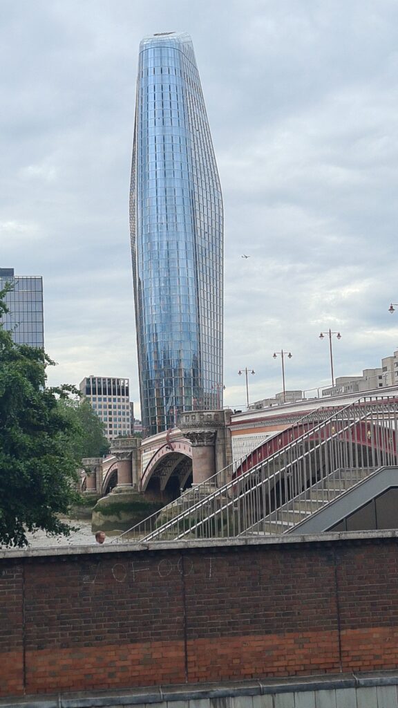 Then we walked back down to the Thames and walked up to get a glimpse of Tower Bridge from just passed Blackfriars Bridge. And it was just a glimpse,