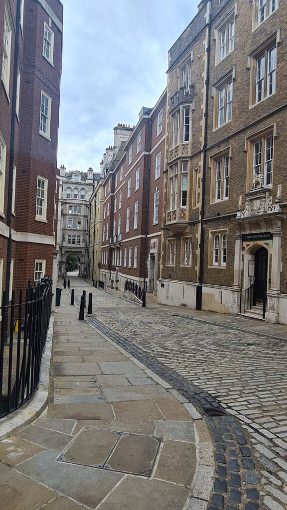 with links back to the Knights Templar up until their dissolution in 1312. The area has been a legal precinct since the 1300’s. We weren’t allowed into the Temple Church, but sat outside for a time listening to the singing within. We kept walking south through the Temple area and eventually found that there was no exit, so we backtracked to where we came in.