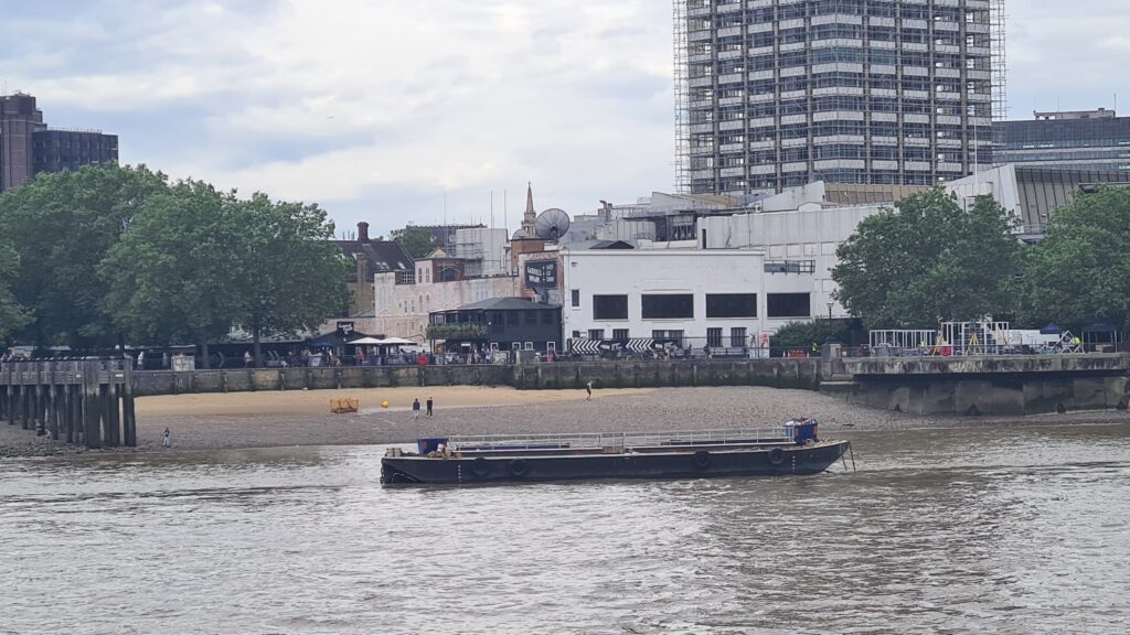 We walked back along the Embankment and saw a part of the Thames Beach (the tidal height difference on the Thames is very significant)