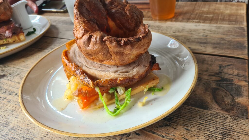 another English checklist item done for me. The servings were reasonably generous and we both got a good sized Yorkshire pudding. It was fun sitting having lunch and reflecting on our holiday.