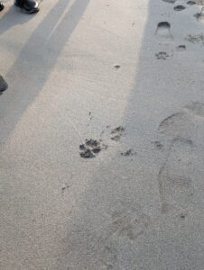 We walked up the beach to change over to walking shoes and found fresh dingo tracks across the recent high tide line.