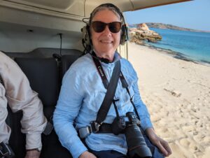After breakfast we stood on our balcony and watched a couple of helicopters take-off from a beach across the water from our boat.