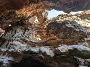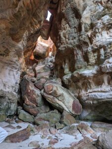 The cave was really interesting, from a very large rock that had fallen from the top of the headland that had amazing ripple marks over it, to a “hidden passage to the right of the Cathedral cave and the Cathedral cave itself. Beautiful rocks and light to show them at their best.