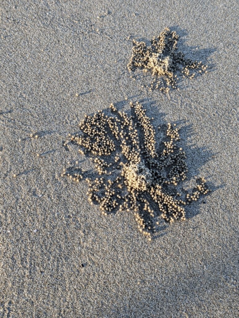 The crab casting are small balls of sand, and they are everywhere, but every now and then there is an outlier, and they form amazing patterns.