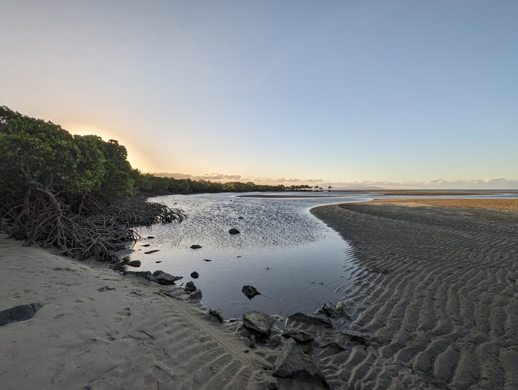 Around 4pm we jumped in The Truck, and headed south down to Yule Point, about 10km from us. It was suggested to us by our Airbnb host to go down there at low tide. It is an expanse of sandbanks and mangroves. More sandbank than mangrove, but really worth the visit.