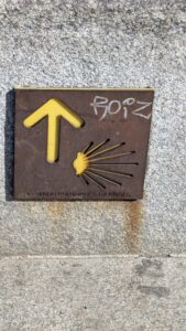 The area around the twin churches is a place where to pilgrimage paths intersect. To assist the Pilgrim each path has a different coloured arrow to define the correct direction the pilgrims should take. Those on the Caminos de Fatima Pilgrimage follow blue arrows and those on the Portuguese Way of St. James (Caminho Português) follow the yellow arrows.