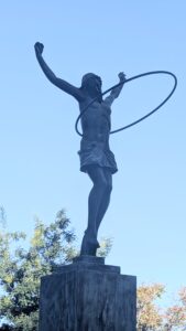 It is one of Spain’s best examples of Isabelline Gothic architecture. It was built between 1477 and 1504. The main facade features a grand entrance door with an impressive coat of arms, many gargoyles and a huge studded wooden door, and a display of chains, hung high on the left hand side, once worn by Christians who were freed from imprisonment in Granada. There was a modern statue of Jesus with a hula-hoop in front of the monastery.