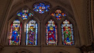 There are over 700 stained-glass glass windows in the cathedral, all very colourful and bright when we were there.
