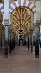 In the 8th century a mosque was built on the site of a former Visigothic Basilica by Adb al-Rahman I, in the 9th and 10th centuries successive rules expanded the mosque, and ornate features like the mihrab and the minaret. It became one of the largest and most beautiful mosques in the Islamic world. It also has a quirk to it, the original Mosque did not face Mecca, it was/is about 40 deg out of alignment, it points north/south! There are many theories as to why or how this occured, all are interesting.