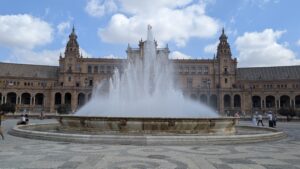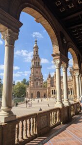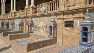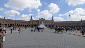 We headed back towards the canal and Seville City. We crossed the canal on the Puente de los Remedious, and to our joy we walked straight into Parque de Maria Luisa. An instant relief from the 30 degree day. We walked up Av de Rodriguez de Casso to the amazing Plaza de Espana.