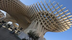 The Seville “Mushrooms” are close to our hotel, so I took advantage of a slow morning and took a walk to see them (via the laundrette in search of a missing sock, no luck!). Metropol Parasol or Las Setas de Sevilla is a large wooden structure located in Plaza de la Encarnación, It is 26m high and covers an area of 150x 70m. It claims to be the largest wooden structure in the world.