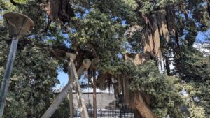 There are a few enormous fig trees in the gardens near us and around the corner. A few have got some serious branch support beams in place.