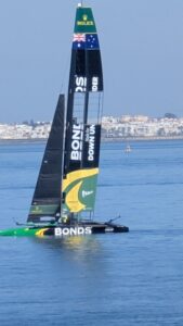 On the walk back to the mainland we could see a few of the boats for the Sail GP out on the water. I recognised the Australian flag at the top of the sail none of them. The boat was sponsored by Bonds, and was predominately green and gold in colour, a nice surprise.