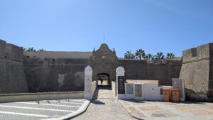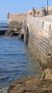 From there we walked out to Castillo de San Sebastián via the scenic stone causeway. The causeway has a few openings in it to allow the oceans waters to flow through it to and from the bay. One of them is large enough for small fishing boats to pass through. It’s about 500m long and provides great view back to Cadiz.