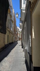 Due to the “work” of the Earl of Essex, (see yesterday’s blog), old Cadiz features building predominately of the 17th and 18th centuries. This gives all the streets and buildings a sense of uniformity and for some reason I get a sense of comfort from that. Three storey buildings with balconies at every level, narrow streets (most just, and only just), wide enough for one car.