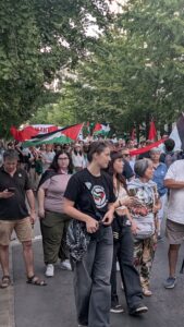 While we were eating we could hear a lot of music and crowd noise coming from the main street. Turns out it was a large vocal peaceful march in support of the Palestinians. It was very colourful and lively, with lots of singing and dancing.