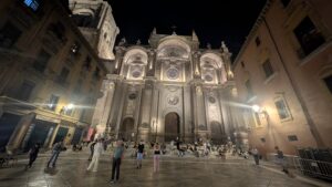 We arrived in Granada at the foot of the Sierra Nevada Mountains a bit after 4:10pm, checked into our hotel. After settling in and getting some information from the concierge, we went out to have dinner, our plan was Tapas for dinner then go to the Granada Cathedral to sit in on a service to take in the atmosphere and acoustics. We got to the restaurant and found that Tapas was only served at the bar, there was no room at the bar so we decided to have a la carte. We got a table outside, I ordered Ox Tail and Deb had a Salmon and Jamon Salad. Both were nice and the atmosphere was great.