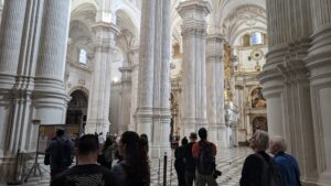 Our day started with a 10am service in Capilla Real (Royal Chapel). Long story short, there are two ways to see this Chapel, go in as a tourist or go in to attend a service. You cannot take photos either way, so we opted for the service so we could experience it as a working Chapel. The chapel itself is a Renaissance style building and was built to house the sanctuary the tombs of Queen Isabella, Ferdinand III, Alfonso X, and other Castilian royalty, along with a venerated image of the Virgen de los Reyes, built in the years 1512 to 1517. The Gothic Cathedral was then built around the chapel in the second half of the 16th century. We were very lucky, we entered the chapel at sat towards the back, a bit before 10am they opened the gates into the sanctuary, the highly ornate part of the chapel that contains the tombs and alter. As everyone started to move inside we followed and got seats at the back. The service was performed by 5 priests assisted by alter buys (apparently alter boys these days are 40 to 50 year old men!). The music and singing for the service was pre-recorded, but it still added to the atmosphere. We both enjoyed the opportunity to see the chapel, without it being full of tourists.